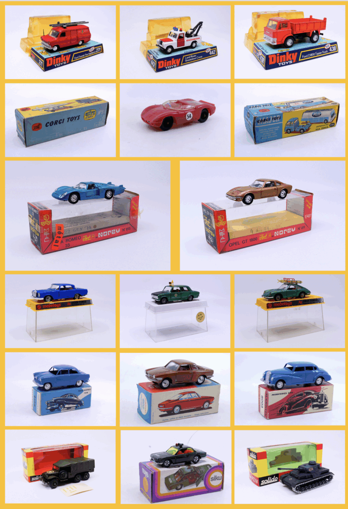 This week we have some beautiful examples that have in common the fact that they have removable accessories positioned on a gallery. These were a delight for children who saw them as a little fun extra. Later, when the children became collectors, they will arouse their anxiety…is a suitcase or a ski missing? What joy for the child to realize that the suitcase opens! Even if, after repeating the operation ten times, he realizes that the opening has given way! We have all experienced this kind of disappointment.